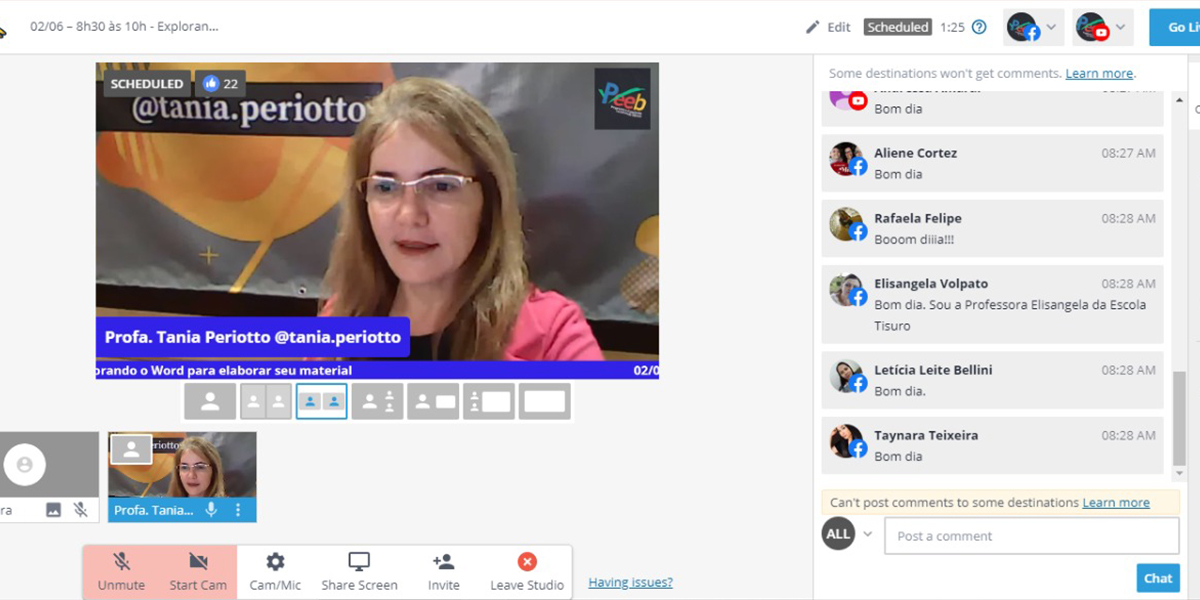 O PEEB Conexão Digital é aberto para professores de escolas municipais, estaduais ou privadas. Ao todo, já são mais de 2.000 professores inscritos, que participam de encontros semanais online pelo YouTube e Facebook. Os participantes estão espalhados em 11 estados brasileiros. “Estamos atendendo docentes de 69 cidades do Brasil, além de participantes da Colômbia e da Itália. Após cada encontro, damos suporte nas práticas diárias”.