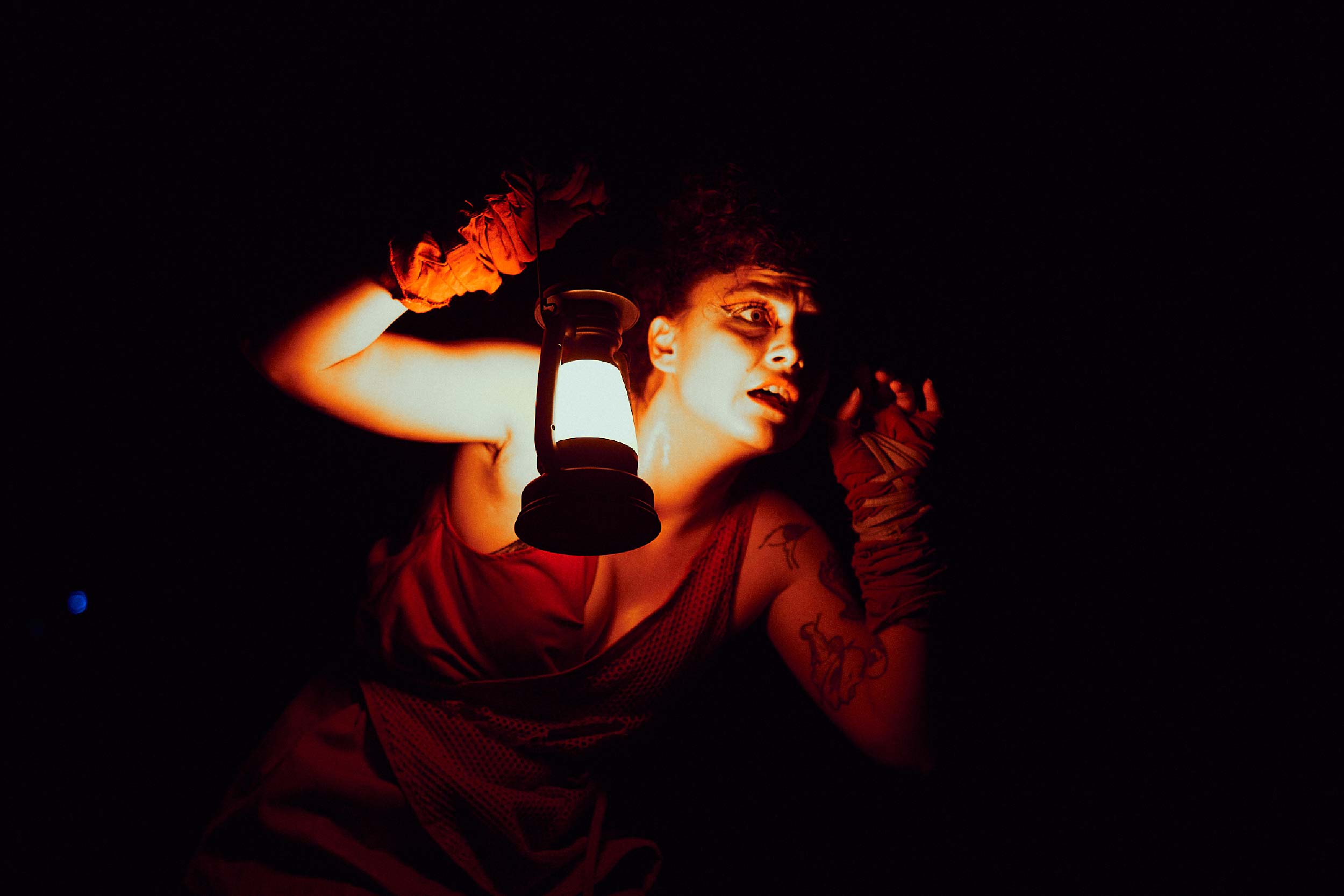 A trama de “Janaína e a estrada para a silhueta de gazânias” se passa em um futuro distópico e conta a história de uma mulher que vê sua vida totalmente modificada quando uma facção derruba o governo e instaura uma ditadura com o objetivo de controlar a sociedade em nome de Deus. Para as mulheres, a vida se torna ainda mais difícil. Para se manter viva, Janaína (a protagonista, vivida por Kênia Bergo) percorre um longo caminho, por onde vai encontrando pessoas que entrelaçam sua fuga. A produção e direção são de Thayse Mochi, que também está em cena ao lado de Bergo, Carol Rodrigues e Vinicius de Brito. A composição, direção musical e sonoplastia ao vivo são do músico Caio Henrique Alves. Natiele Fontana, que atualmente reside em São Paulo e desenvolveu o trabalho à distância, assina a codireção, dramaturgia e produção. Esse espetáculo é contemplado pelo Prêmio Aniceto Matti e, por ainda estar cumprindo suas obrigações com o edital, terá entrada franca.